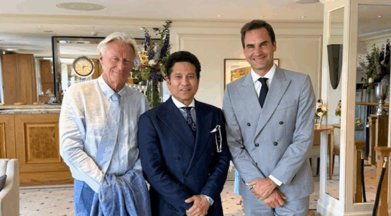 The iconic picture features Sachin standing between Federer — the 20-time Grand Slam champion and eight-time Wimbledon winner — and Borg, the Swedish maestro who clinched 11 Grand Slam titles and five Wimbledon crowns. With 31 Grand Slam titles combined between the two tennis greats, Sachin’s caption offered a charming blend of wit and admiration.