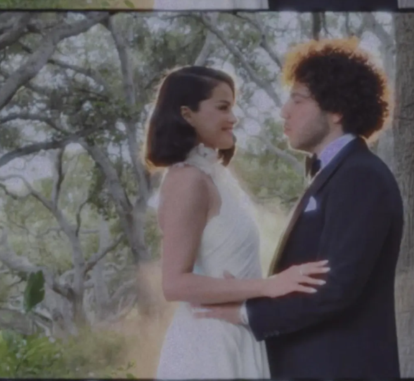 The photos and videos showed the newlyweds embracing, holding hands and enjoying the moment. A few close-up shots showed Gomez’s bouquet of lily of the valley and her wedding rings.