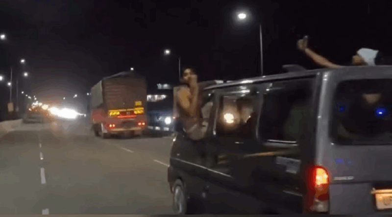 The video shows that the female bike is riding along with her car on a highway in Uttarakhand’s Haridwar. It can be seen in the video that a car which is full with men moving at a high speed on the same highway ahead of her. A shirtless man is also seen in the video clinging out of the window of the car and misbehaving with the woman. He is also seen in the video blowing flying kisses at her while the car is moving at high speed.