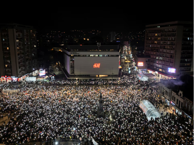 Tens of thousands of people flocked to the southern town of Nis on Saturday to commemorate victims of a railway station disaster and take part in a student-led protest that has become the biggest threat yet to the Serbian president’s grip on power.