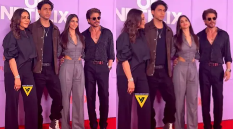 At a recent event in Mumbai, Shah Rukh Khan and his family served major looks and made fashion statements. The actor was joined by Aryan Khan, Suhana Khan, and Gauri Khan.
