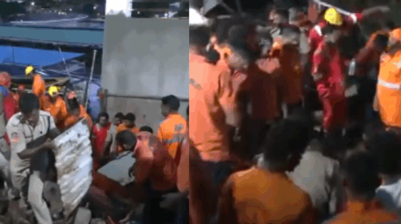 #WATCH | Andhra Pradesh | Seven people died and four got injured after a 20-foot-long stretch collapsed during the Chandanotsavam festival at the Sri Varahalakshmi Narasimha Swamy temple in Visakhapatnam. Search and rescue operations are underway by the SDRF and NDRF: District… https://t.co/a3CqI37FSI pic.twitter.com/cPlakHAxCG