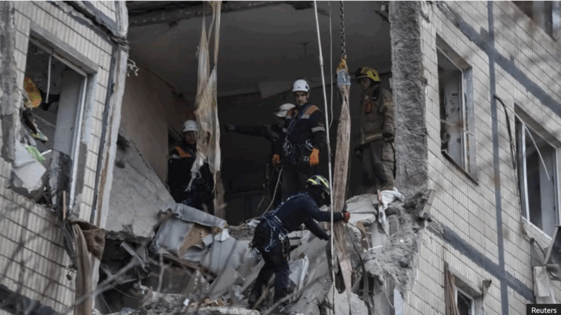 A strike on an apartment building in the city of Dnipro killed two people and wounded 12, while three died in Zaporizhzhia.