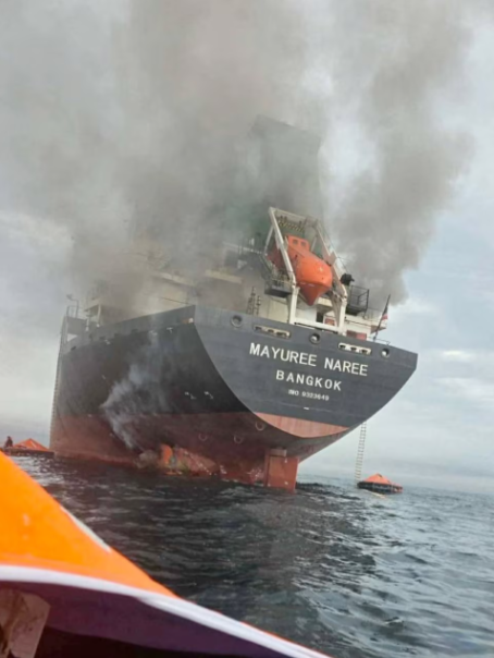 Two projectiles of unknown origin struck the Thai-flagged Mayuree Naree dry bulk vessel as it sailed through the strait earlier on Wednesday, causing a fire and damaging the engine room, the ship’s Thai-listed operator Precious Shipping (PSL.BK) said in a statement.