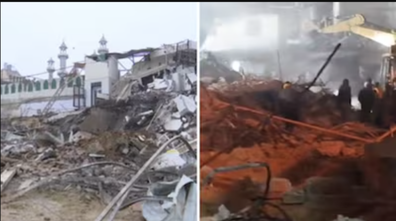 As the demolition began, a large number of people gathered outside the mosque, with some raising slogans against the action.