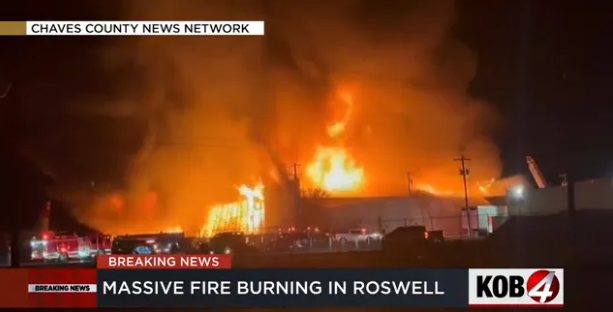 A HUGE fire has erupted at the Roswell Air Center nearby the mysterious Hangar 84, the site linked to the bizarre 1947 UFO crash.