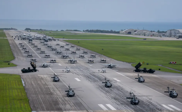 The show of power, dubbed “Elephant Walk”, was formed using 53 US military aircraft and was put up in a display at the US military base in Kadena Air Base in Okinawa, Japan.