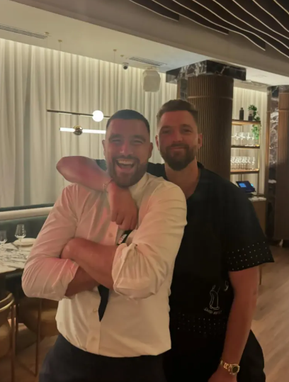 Kelce posed for a picture with sports commentator Chandler Parsons in a photo shared by Parsons’ wife, Haylee Parsons, on Instagram.