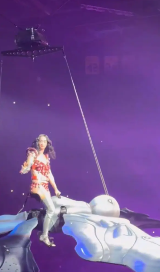 The pop superstar, 40, was performing her hit “Roar” as she flew above the crowd in San Francisco on a giant butterfly machine, when the technical prop suddenly malfunctioned.
