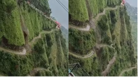 The onlookers captured a video of the incident. In the video, the JCB was seen falling along the steep mountainside off the National Highway 5 in Jabli, where it was opening a blocked road. The machine fell 300 metres into the gorge after rocks fell from the hill.