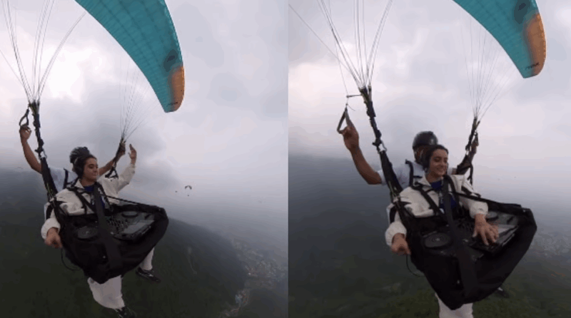While most DJs dream of festivals, nightclubs, or arena stages, DJ TRYPS literally took her music to new heights. Quite literally. Suspended mid-air with her gear, she turned the sky itself into a pulsating dancefloor. The beats echoed against the silence of the mountains, carried by the wind as she performed with passion. She seemed to be enjoying the experience at 10,000 feet above the ground, grooving to her beats.