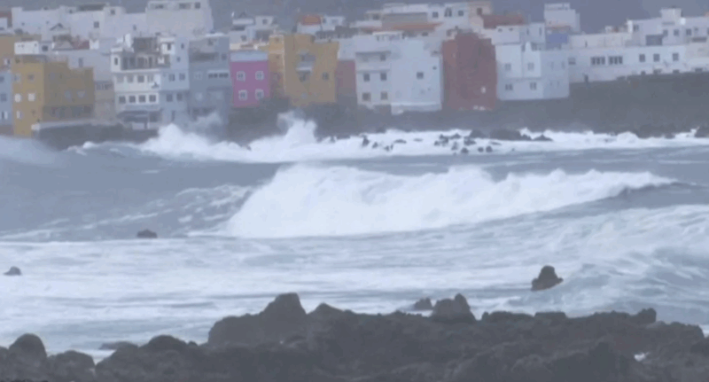 At Puerto de la Cruz, a holiday resort in northern Tenerife, one woman died of a heart attack and another 10 people were swept out to sea. Three of those were seriously injured and taken to hospital.