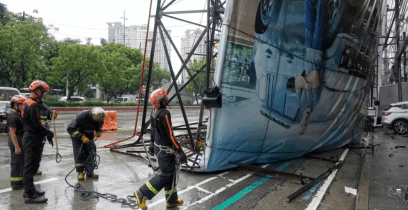 The storm earlier crossed the Philippines, where a parked truck was crushed by a billboard-like structure toppled by high winds in Quezon City, north of Manila.
