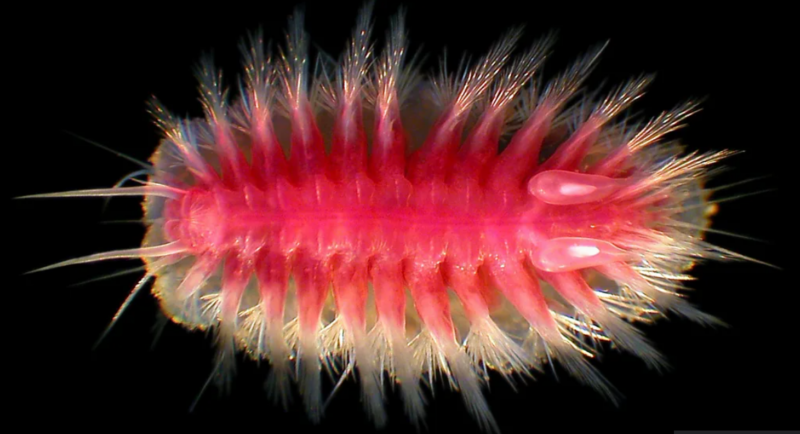The “bone-eating snot-flower” – Osedax mucofloris – in a polychaete worm that was first discovered in 2005 on the carcass of a whale. These bone-eating worms inject acid into the bone. “It’s like they’re putting their gut inside the bone and absorbing it directly – quite strange,” says Glover.