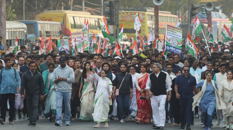 VIDEO | Kolkata: West Bengal CM Mamata Banerjee leads protest rally against ED raids on I-PAC.